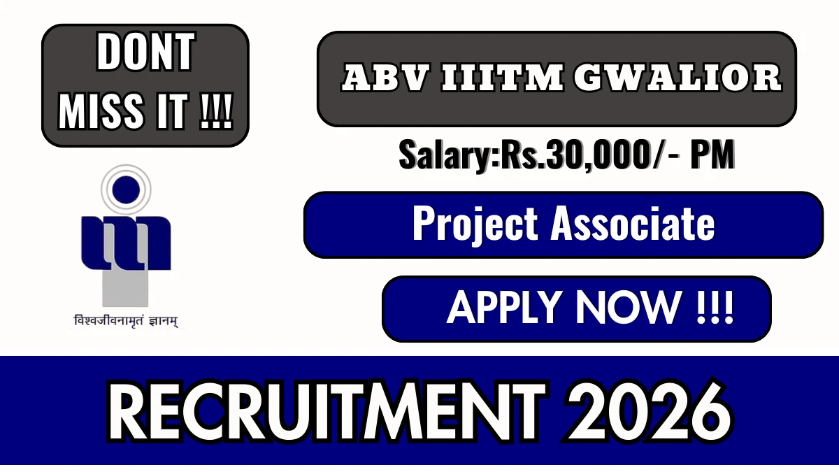 Candidates who meet the eligibility criteria can apply online for the ABV IIITM Gwalior Project Associate Recruitment 2026.