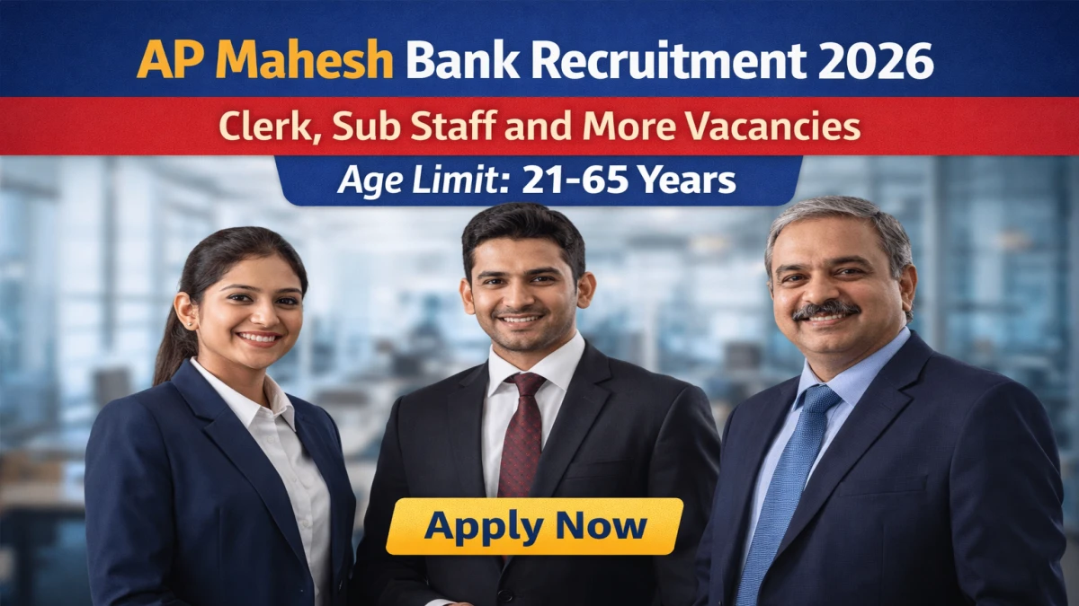 The Andhra Pradesh Mahesh Co-operative Urban Bank (AP Mahesh Bank) Recruitment 2026 for posts of Clerk, Sub Staff and More. Candidates with Any Graduate, 8TH, Any Post Graduate, M.E/M.Tech, MBA/PGDM, MCA Can Apply Offline. The Offline application opens on 25-03-2026, and closes on 06-04-2026. The candidate shall apply Offline through AP Mahesh Bank website, apmahesh.bank.in.