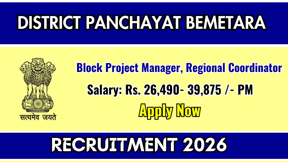 District Panchayat Bemetara (Zila Panchayat Bemetara) Block Project Manager, Regional Coordinator Notification 2026 has been released on 19 February 2026 on the official website. A total of 5 vacancies have been announced through the Zila Panchayat Bemetara Block Project Manager, Regional Coordinator Recruitment 2026.