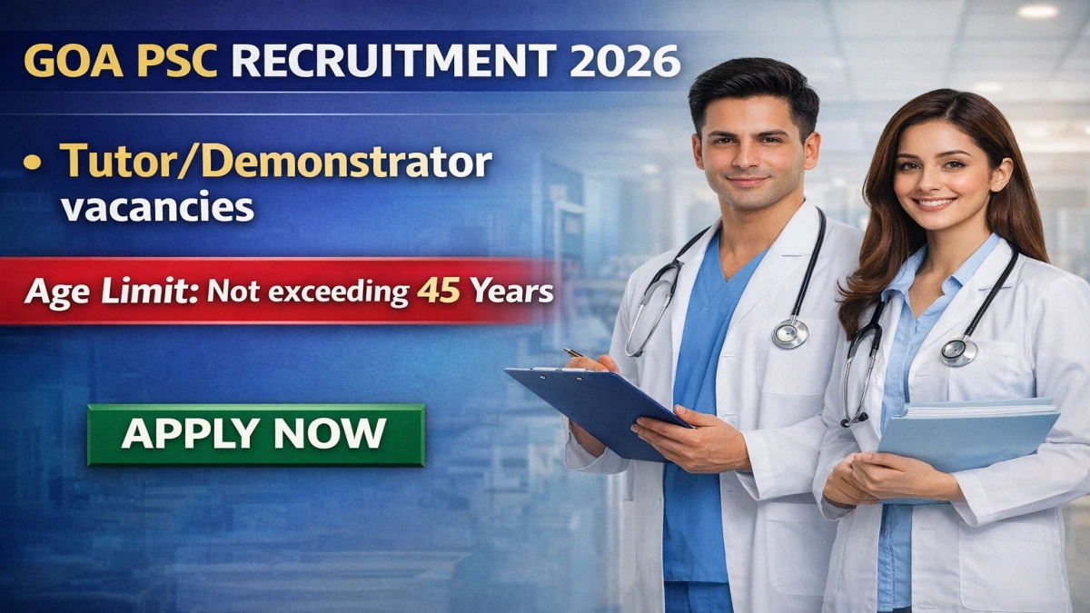 Candidates not exceeding 45 years of age who possess a recognised Medical Qualification (MBBS), Degree in Home Science, or other post-wise prescribed qualifications are eligible to apply for these Tutor/Demonstrator and other posts. The online application process for Goa PSC Tutor/Demonstrator Recruitment 2026 has started on 20 March 2026 and will remain open until 03 April 2026.