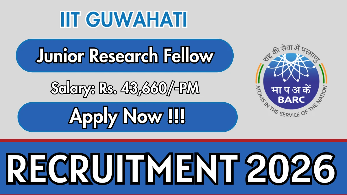 Indian Institute of Technology Guwahati (IIT Guwahati) Recruitment 2026: Indian Institute of Technology Guwahati has released the official notification for 1 Junior Research Fellow posts, inviting applications from eligible candidates in Assam. This recruitment provides an excellent opportunity for candidates seeking stable and well-paid government jobs.