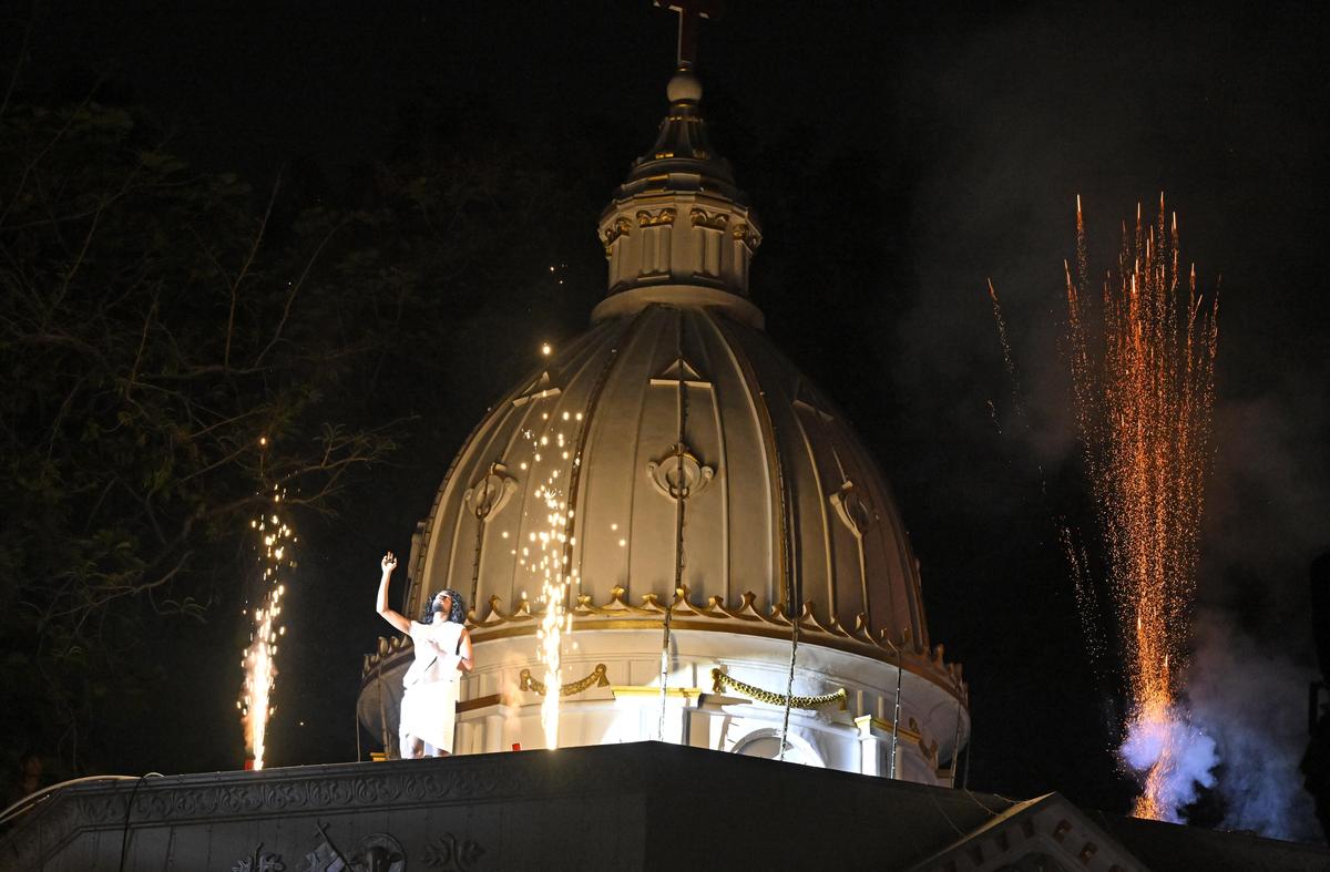 At St Mary’s Basillica in Secunderabad, Christians enact a play depicting the resurrection of Jesus Christ on the occasion of Easter on April 5, 2026.
