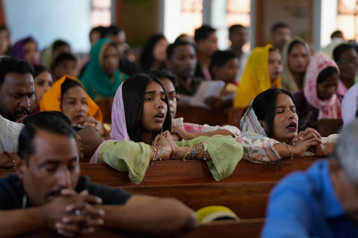 Christian devotees offer prayers at a church on Easter Sunday in Jammu, on April 5, 2026.
