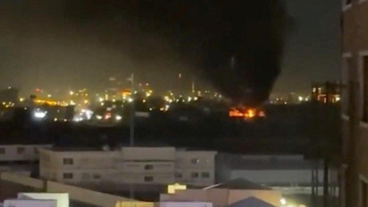 Smoke and flames rise following a drone attack on the UAE consulate in Erbil, Iraq in this screengrab obtained from social media March 9, 2026.