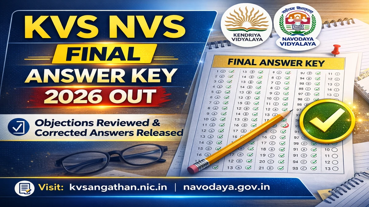 The Kendriya Vidyalaya Sangathan (KVS) and Navodaya Vidyalaya Samiti (NVS) has released the KVS NVS Answer Key 2026 for Tier-1. Candidates who appeared for the KVS NVS Tier-1 examination held on 10-11 January 2026 can now check and download the provisional answer key (released 31 Jan 2026) and final answer key (28 Feb 2026) from the official websites kvsangathan.nic.in / navodaya.gov.in or CBSE portal.