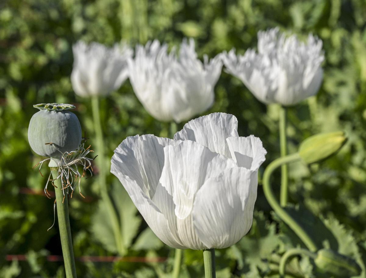 Ready for the draw: Poppy capsules after the first round of latex extraction. The latex can be extracted three or four times with the first product being the purest.