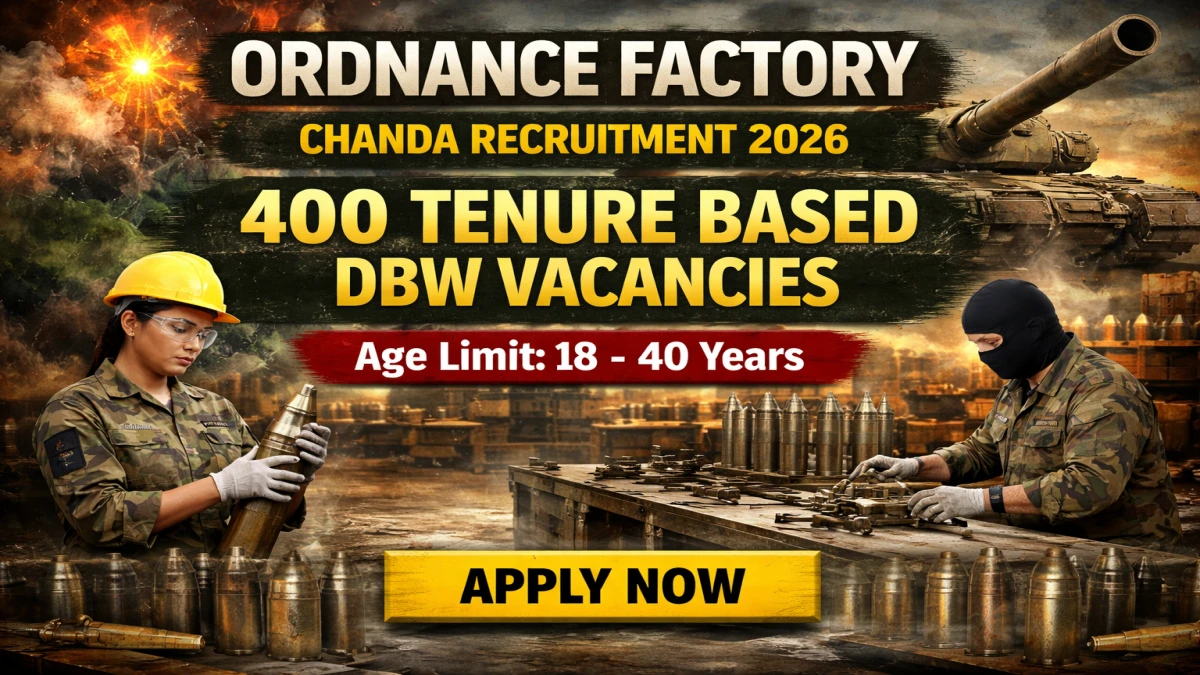 Ordnance Factory Chanda, a Unit of Munitions India Ltd., under the Ministry of Defence, Government of India has issued an official advertisement (No.2544/Per(IV)/OFCH/Tenure DBW/01/2026) for Ordnance Factory Chanda Recruitment 2026 to fill Tenure Based DBW (Danger Building Worker) posts on contract basis, initially for a period of one year extendable up to a maximum of four years based on factory requirement and individual performance.