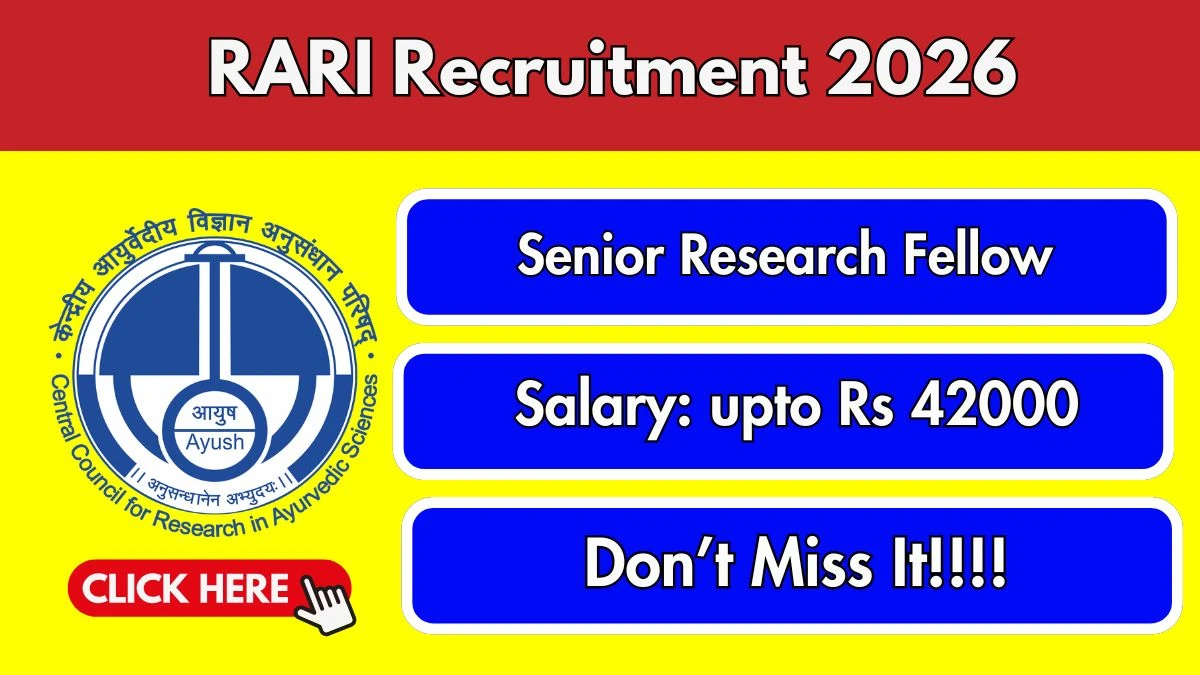 Regional Ayurveda Research Institute (RARI) has released the Senior Research Fellow (Ayurveda) Recruitment 2026 notification for 5 posts under Advt No. 6-147/2026-क्षे.आ.अनु.सं./लख./तक./डब्लू.सी.एच./2087. This is a walk-in contractual opportunity offering a monthly salary of ₹42,000 + HRA, making it an excellent opportunity for Ayurveda professionals interested in research roles.
