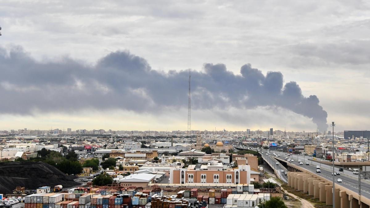 Kuwait said it shot down multiple drones, but the General Civil Aviation Authority said one hit a fuel tank at Kuwait International Airport, sparking a fire that sent a huge plume of smoke into the sky.